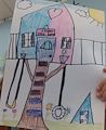 Wow, this is the tree house I want to stay in! What nice details! I love the curtains in the windows and I would swing for hours on your two swings. I see you even provided a tent for additional guests. You thought of everything! Very cheerful artwork Chloe, great job!! Love, Grandma Hamlin