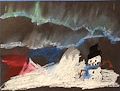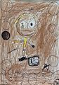 This piece is very abstract! Makes me think this Guy is thinking about a million different things. Or perhaps, he's just rolling around in the dirt at the park? Looks like it must be late afternoon or early evening because the Sun is going down. I like it because it makes me wonder about him.