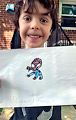 Such Bright Eyes and a big smile on this Guy. He looks like he's dressed for a rainy spring day and happy because of all the flowers that are blooming. Love his navy blue hat. So proud of your artwork.