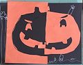 Love this two-tone pumpkin. I especially like the backgrounds being the opposite color of the faces. Black face orange background orange face black background. Happy Halloween Dominick.