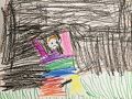 Hey Lucas- I needed some time to think about this picture that you created and what it represented to me. It reminds me of being at Great Gramma Dor's lake home at sunrise. The red in the picture reminds me of the sunrise being reflected in the water. There is a lone tree trunk across the lake. Your dad and Auntie Jenna spent a lot of time at the lake with Great Gramma Dor-- they would go fishing, canoeing, swimming, and taking hikes in the woods.
