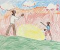 I like this drawing because it reminded me of getting up early to go to baseball practice. I'm assuming it's a sunrise and not a sunset. I remember the smell of the grass and the fact that it was still wet from the dew. Every time I smell that now, it brings me back to those days, just like this drawing. Thank you.