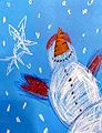 Hello Charlotte --- I like your Christmas art! Very conceptually unique. Mary and Joseph look quite happy (and thin). Maybe they're happy because Jesus appears to be sleeping (finally!). Also, your Christmas star is properly "shiny and bright". Two questions: 1) Who or what is that hiding in the stable building just to the right in the picture? 2) Why are they hiding? Keep on being creative! Love, G'pa