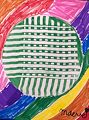Hi Maeve, I love the juxtaposition of the two major design elements which are the circle and diagonal stripes. The colors are great also ! Love JaJa