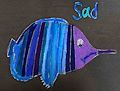 Hi, Evan. I am wondering why your fish is so sad. He must be hungry!! He is a beautiful fish. I love his stripes and colors!! Your artwork is so special—just like you! Love, Nana Paula