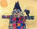 Ooooo! We love this scary, colorful scarecrow! The crow looks like he might be screaming!!! Love, Nana Paula and Papa Jerry