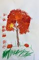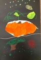 The artist in his own words described this work as : At the bottom is a large apple and a apple tree. In the middle is a pumpkin with a lot of vines and at the top is the moon and starts and if you look closely a red dot which is Mars. Nice work Myles !