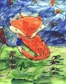 This is one scary fox! You did wonderful job drawing him. I really like your bright colored background. Love, Grandma