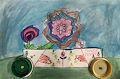 Oh Corrine I love your flower power mobile. Don't you wish it were real so when I come to visit we could go riding around together. We could carry flower seeds with us to hand out to people to plant their own flowers. You made your drawing come to life. Love Mimi