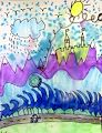 That’s the prettiest dragon I have ever seen! It looks like he’s going to the castle! You are a great artist! Love Gram