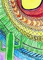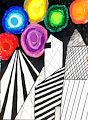 This is very interesting, the juncture of black and white straight lines with the colorful circular lines makes an interesting composition. I also like your overlapping geometric lines. I love how you use all of the space!