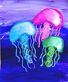 I love this Elle. I like the colors and the different texture on the jellyfish your use of value is interesting, the dark background sets off your jellyfish. I really like how you use all the space and I love how colorful the whole painting is! You are quite an artist!!!