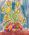 Bright vase and yellow flowers, will make one smile!