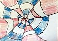 Wow! The red, white and blue colors almost make this look like a folded American flag. Or it could be blue and red pencils all pointing to the middle of the drawing. What do you see when you look at it?