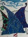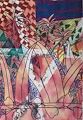 August, I wonder how long this took to create! So many triangles and checker designs with palm trees! Looks like you used markers and paint?! It probably is not my favorite but I appreciate creativity!! Grandma