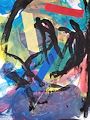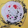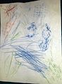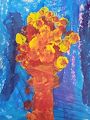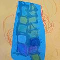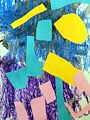 Olivia, what a unique piece of art . I see several different animals in this painting. Looks like a blue alligator at the top left , a blue fish other right, couple yellow reptiles in the middle & a blue turtle down on the left . Great job & imagination!