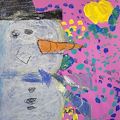 What a great looking snowman . Great job ! Keep up the good work Olivia . Very colorful.