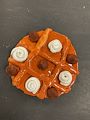 This is really neat. I immediately recognized it as tic tac toe but it also makes me hungry as it looks like a snack. A nice conversation piece of art.