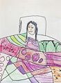Dear Samantha, Once again, you show me how clever you are in choosing the most vibrant colors for your drawings! I also loved the way your people almost seem s like they were standing on a stage above water! Keep up your fabulous work. Love Grammy??
