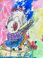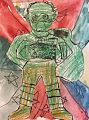 Vinny this picture is so colorful and cool i like the animal on his head! Great job!