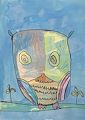 Hey, Mac! This is a weird dude this latest guy you have posted! He reminds me of a song when I was your age. It went like this, "It was a one-eyed, one-horned, flyin' purple people eater." But yours is a one-eyed, two horned. I think he's great. Great job! Please tell me more when we next see each other. Popple