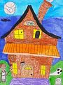 Peyton! I absolutely love this Halloween drawing!! It is my favorite of all your work so far. I especially love how you put a blue eye in the upper window. You are a clever girl and your selection of colors are perfect!!!