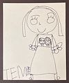Hi Temple, I love this new drawing. The teacher has a cool shirt. Is the teacher you when you grow up? I hope she gets to eat the apple the kids gave her. The kids have awesome hair. Great job! -Aunt Stacey