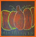 Five little pumpkins sitting on a gate (Do you know that poem?), well, these look like five big pumpkins and they look like they are sitting on the grass. How wonderful to see your drawing of pumpkins. I'm wondering if you drew them with chalk or with pastels. How did you like using these. Did you hands get all messy? Keep drawing. Love to you, Auntie N