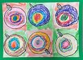 Temple, your lovely ornaments remind me of Wassily Kandinsky's circles!! Did you cut some out and put them on your Christmas tree? I like seeing the combination of crayon and watercolor. Did you paint over the crayon circles? It is fun to see crayons push away the water color and find a place without crayon wax. Love, Auntie N