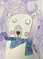 What an adorable polar bear! Did you use a white crayon to draw the snowflakes? It is magical to see the crayon push (resist) the watercolor. I really like the colors you selected for the bear's snug scarf. Keep creating!! Love, Auntie N.