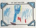 DUKE! Your body is blue and your hair is yellow, looks just like you! Are you on your tree swing?? You did AWESOME. I love you so much best buddy.