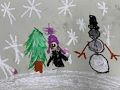This is a great picture! I love that you added white on the green tree so it has snow on it too! It's very detailed.