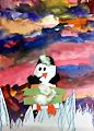 Well done. The Snowman fits in with background! Very colorful.