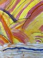 Lizzie, I really like the colors in this one. I like the different shades of green and blue for the water. And then the yellow, orange, black and pink really contrast well. Congrats on a cool piece of art. Love, Grandpa by the lake