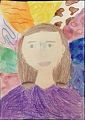 I love your self portrait, Clara!!! I especially like your eyes, they are beautiful and you drew them so beautifully!!! I also like seeing the things in your life in the squares around your portrait. Great job!!!