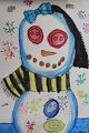 What a fun snowman you drew and colored. With a carrot nose and button eyes, a bow in her hair and a scarf she's set to be out all winter. It must be snowing with all the snowflakes we see. Thanks for sharing!!