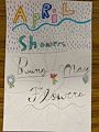 Dear Grace, Your new artwork is beautiful! Spring has always been my favorite season of the year. I love to see the first daffodils and tulips. I love your choice of colors too. I love the saying “April showers bring May flowers” and the saying “ you are my sunshine Grace”. Love, Grandma, your biggest fan.