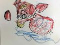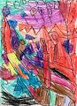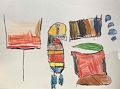 This picture has lots of colors and a good drawing. The purple color is my favorite. Good job Pax! Love you!