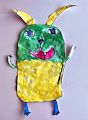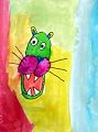 I hope you didn’t dream about this scary green monster. Your monster looks like a combination of a walrus and a cat to me. I think the monster just woke up. The eyes look a little sleepy. Very nice job August.