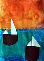 Love love love this one!!!! The colors, the boats, it really looks like the water and the setting Sun in the sky!??