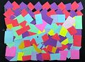 I just love these bright colors and the way the shapes are randomly placed and then organized at the top. I made this one into Christmas cards! Thank you, Amaya!
