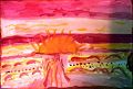 You've used my favorite colors in this one, Amaya! Red, orange, yellow --all hot, summer colors. I love the horizontal lines contrasting with the vertical line and the sun burst right in the center -- really creative use of color and shape, I think.