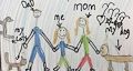 Hi Amaya - This picture really makes me smile! I love seeing you and your dad and your mom, of course; and I laughed out loud when I saw one of your cats climbing up something --a wall? a tree? Just like those silly kitties! Charley looks just like Charley, happy as usual. Are those birds carrying hearts and a star? Very smiley picture, Amaya. Love you!