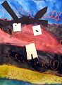 Hunter is that a turtle head in your art work, he looks alittle silly but I like your art pictures. ?