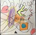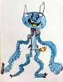 Hunter this piece of artwork reminds me of a cat. But this one looks like a scary blue cat. I do like your imagination when you put it on paper. You are Nana’s favorite artist. ??