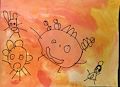Those squiggly eyes are very cute on your drawing. I like the guy with the antennas. You are very creative with a great imagination. ?? Love Nana Marcy