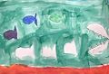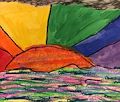 Sophie- to me, this looks like a beautiful sunset. The colors in the sky are a beautiful mix of some of my favorite colors, especially the green, blue, and purple. The setting sun is a burnt orange and the bottom part looks like the ocean with its waves. Nice job with your artwork again. Love it and you.