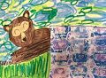 Sophie- You did a nice drawing of the bear. I think the eyes are closed because the bear is sleeping and hibernating. Great job with all the colors. Love your artwork.
