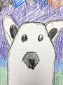 Sophie- I love your Bunny artwork. I thought the way you used the bottom of a carton to depict the nose, mouth, and whiskers was a great idea. Same with the ears. The coloring is bright and well balanced in your drawing. Nice job again. I bet this was a fun project to create. Love always!