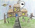 Love your spook house! Nice detail. My favorite is the pumpkin guy on top. Love, grandma Jane